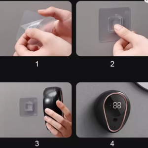 Τοποθετείται στον τοίχο, με ισχυρή αυτοκόλλητη βάση, με κρεμαστράκι πάνω στο οποίο μπορείτε να τοποθετείτε και να αφαιρείτε τη συσκευή πολύ εύκολα (περιλαμβάνεται).