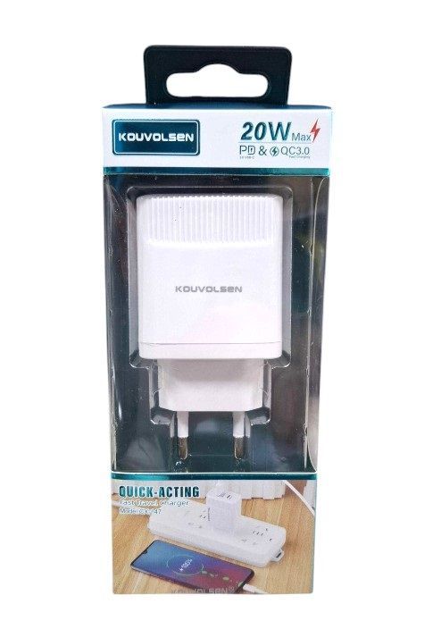 Αντάπτορας φόρτισης πρίζας Fast Charge με 2 θύρες USB-A & Type-C. Υποστηρίζει γρήγορη φόρτιση ισχύος έως και 20W.
