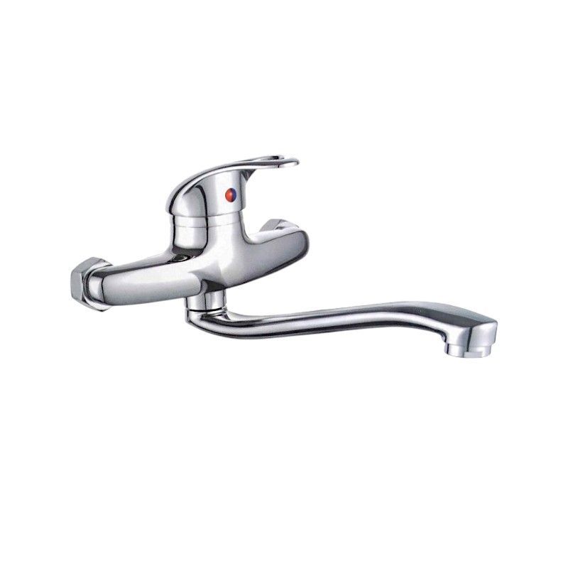 Μπαταρία βρύσης κουζίνας επιτοίχια, αναμεικτική, με μακρύ ρουξούνι. Κατασκευασμένη με υλικά (χρώμιο-ορείχαλκος) εξαιρετικής ποιότητας για την μακροχρόνια ανθεκτικότητα της.