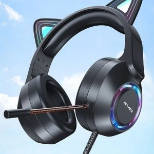 Ενσύρματο ακουστικά AWEI με εξαιρετικό ήχο και πανέμορφο σχεδιασμό με αυτάκια γάτας που φωτίζουν με πολύχρωμο φωτισμό LED. Mε ενσωματωμένο ρυθμιζόμενο μικρόφωνο και ρυθμιζόμενο στεφάνι κεφαλής για άνετη χρήση. Διαθέτουν τεχνολογία μείωσης θορύβων και εργονομικά μαξιλαράκια που προσφέρουν άνεση και απόλυτη ηχομόνωση.