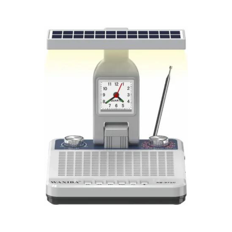 Επαναφορτιζόμενο ραδιόφωνο & φωτιστικό 2 σε 1 με ηλιακό πάνελ, σε ιδιαίτερο Retro σχεδιασμό. Μπορεί να τοποθετηθεί επιτραπέζια σε κάθε χώρο και να λειτουργήσει παράλληλα ως συσκευή ραδιοφώνου και φωτιστικό LED, ενώ διαθέτει και ενσωματωμένο αναλογικό ρολόι. Το ηλιακό πάνελ στο επάνω μέρος, προσφέρει έξτρα αυτονομία μπαταρίας και βοηθά στην χαμηλή κατανάλωση της μπαταρίας. Χαρακτηριστικά: Ραδιόφωνο AM/FM/SW, Πτυσσόμενη κεραία,