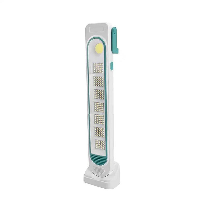 Επαναφορτιζόμενο φως LED έκτακτης ανάγκης με ηλιακό πάνελ στο πίσω μέρος για έξτρα αυτονομία. Χαρακτηριστικά: 3 επίπεδα φωτισμού. Θερμό και ψυχρό φως. Φορτίζει μέσω USB (περιλαμβάνεται) ή μέσω του ηλιακό πάνελ που διαθέτει, Χωρητικότητα μπαταρίας: 2600mAh, Διάρκεια ηλιακής φόρτισης: 8-12 ώρες σε ηλιοφάνεια, Διάρκεια λειτουργίας: έως 10 ώρες, ανάλογα με την ένταση φωτισμού, Πτυσσόμενη χειρολαβή μεταφοράς, Διαστάσεις: 43 x 9 cm. Μπορεί να τοποθετηθεί επιδαπέδια ή επιτοίχια χάρη στις ειδικές εσοχές που διαθέτει. Περιλαμβάνει: Καλώδιο φόρτισης USB, Βάση στήριξης.