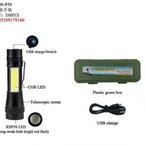 Rechargeable handheld LED flashlight in mini size, suitable for use in activities such as camping, hiking, cycling, hunting, fishing or during work.