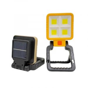 Επαναφορτιζόμενος προβολέας εργασίας LED με ηλιακό πάνελ που προσφέρει έξτρα αυτονομία μπαταρίας και με πτυσσόμενο σταντ στήριξης.