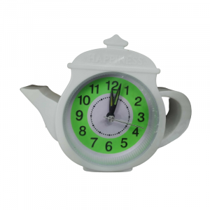 Επιτραπέζιο ρολόι-ξυπνητήρι σε σχέδιο τσαγιέρα και πρακτικό μέγεθος που μπορεί να ταιριάξει σε κάθε χώρο.