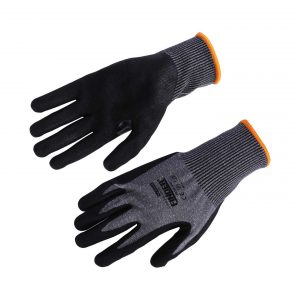 Γάντια εργασίας αντικοπτικά από υλικό, UHMW-PE. 10″ μαύρο νιτρίλιο με επικάλυψη παλάμης, micro foam, επένδυση 13G. Βαθμός προστασίας κοπής: 5 Βαθμός προστασίας διάτρησης: 3