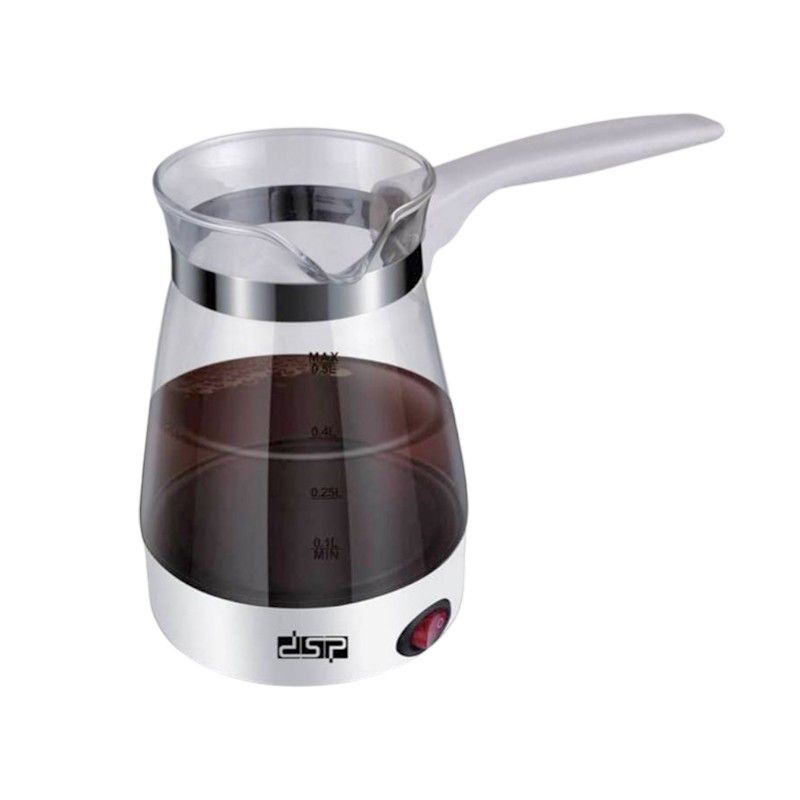 Γυάλινο ηλεκτρικό μπρίκι της DSP για ελληνικό καφέ και ζεστό νερό, εύχρηστο και πρακτικό, μεγάλης χωρητικότητας, για να έχετε άμεσα έτοιμο τον αγαπημένο σας ελληνικό καφέ ή να βράσετε νερό σε λίγα λεπτά.