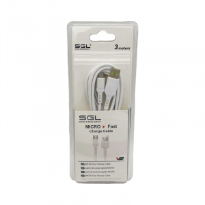Καλώδιο φόρτισης Fast Charge & μεταφοράς δεδομένων – Micro USB . Μήκος: 3m, Χρώμα: Λευκό.