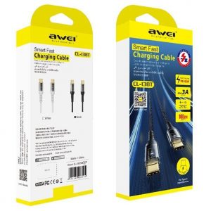 Καλώδιο μεταφοράς δεδομένων USB Type-C σε Type-C της AWEI, με πρωτοποριακό διαφανή σχεδιασμό και ταχύτατη απόδοση.