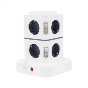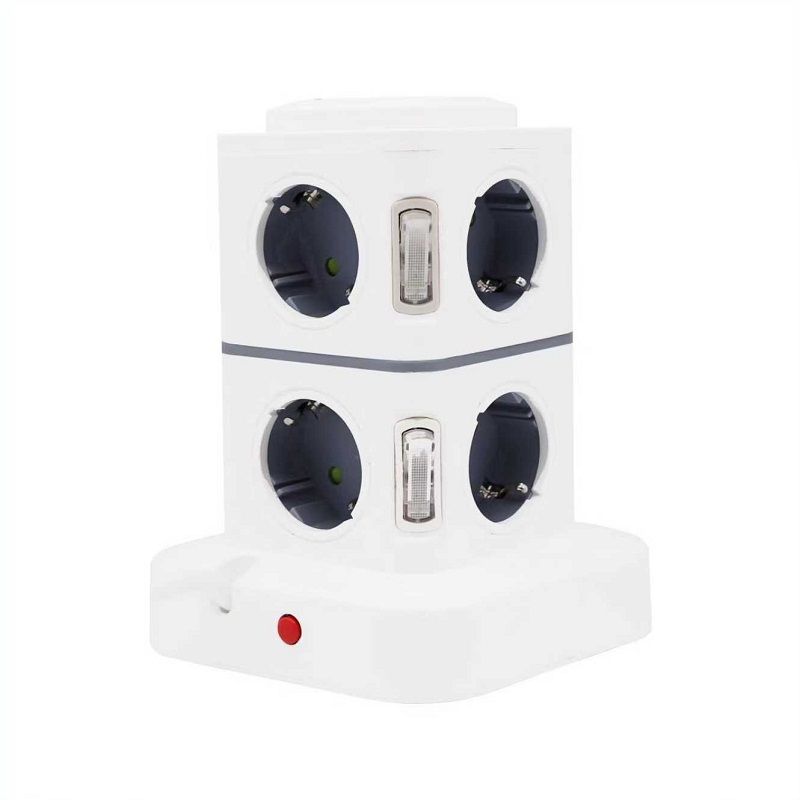 Κάθετο πολύπριζο 8 θέσεων με διακόπτες και πρίζα Σούκο – RC-G8P. Μήκος καλωδίου: 3m