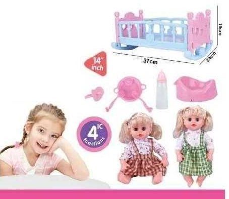 Baby doll with crib and complete set of food and care accessories to take care of your doll like a real baby!