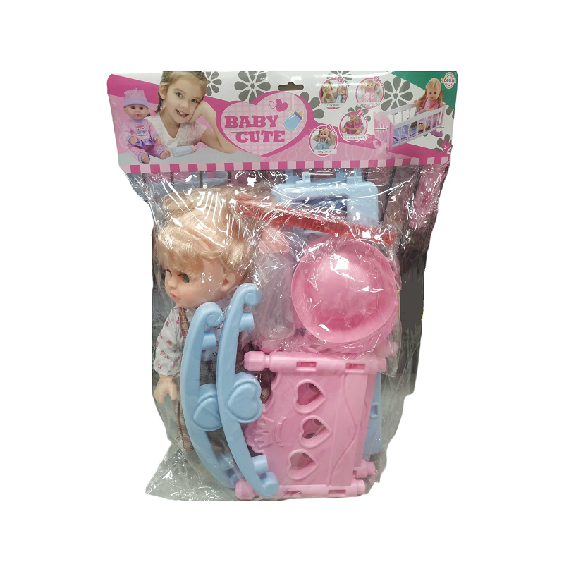 Κούκλα μωρό με κρεβατάκι και αξεσουάρ φροντίδας – K007-33 – 345362