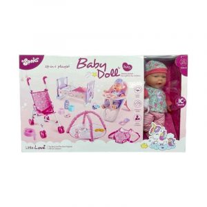 Πλήρες σετ φροντίδας μωρού με κούκλα, κρεβατάκι, καρεκλάκι φαγητού, καροτσάκι, πάρκο, μάρσιπο και όλα τα απαραίτητα αξεσουάρ για την ολοκληρωμένη φροντίδα και την περιποίηση του μωρού σου!