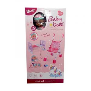 Πλήρες σετ φροντίδας μωρού με κούκλα, κρεβατάκι, καρεκλάκι φαγητού, καροτσάκι και όλα τα απαραίτητα αξεσουάρ για την ολοκληρωμένη φροντίδα και την περιποίηση του μωρού σου!