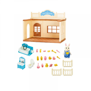 Κουκλόσπιτο mini με φιγούρα κουνελάκι και πλήρες σετ αξεσουάρ μπάνιου.