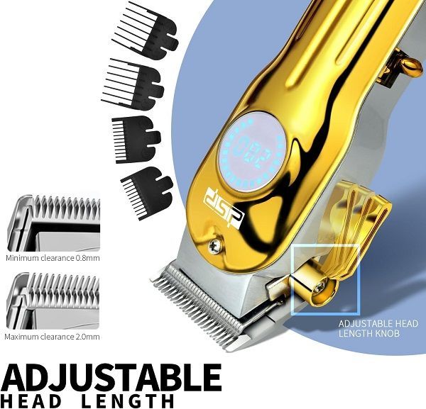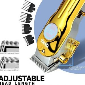 Ισχύς: 5W, Ρυθμιζόμενη λεπίδα, Ταχύτητα 6000RPM, Ψηφιακή οθόνη LED, Αφαιρούμενη κεφαλή, Λειτουργία χαμηλού θορύβου, Επαναφορτιζόμενη μπαταρία λιθίου, Χρόνος φόρτισης: 3 ώρες, Χρόνος λειτουργίας: έως 200 λεπτά,  4 χτενάκια για μήκη κοπής 1.5/3/6/9mm.