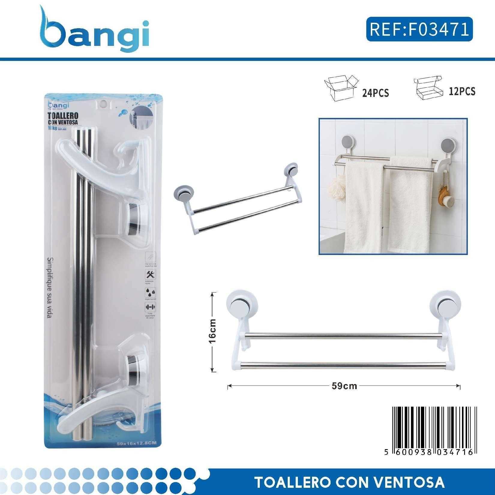 Κρεμάστρα πετσέτας μπάνιου διπλή ράγα με βεντούζες – 59cm – 03471