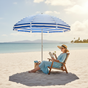 Ομπρέλα θαλάσσης, ιδανική για την παραλία, το camping ή τον κήπο σας. Με πανί από 100% αδιάβροχο πολυεστερικό ύφασμα.