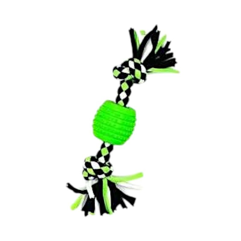Παιχνίδι σκύλου σχοινί με μπάλα μασητική, από ανθεκτικό, μη τοξικό πολυεστέρα, ιδανικό για παιχνίδια τραβήγματος/αντίστασης ενώ παράλληλα βοηθά στην υγιεινή στόματος του σκύλου σας καθώς καθαρίζει ήπια και απασχολεί τα δόντια του.