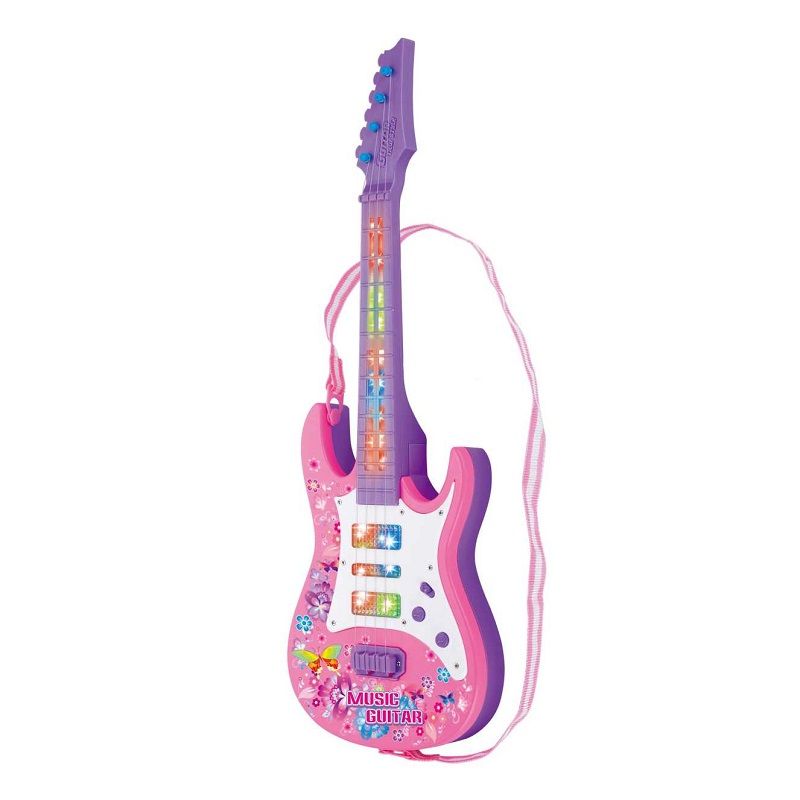 Παιδική ηλεκτρονική κιθάρα σε πανέμορφο πολύχρωμο σχεδιασμό, με φωτισμό και δυνατό ήχο, για να γίνεις μία αληθινή Ροκ Σταρ! Διαθέτει ρυθμιζόμενο λουράκι ώμου.