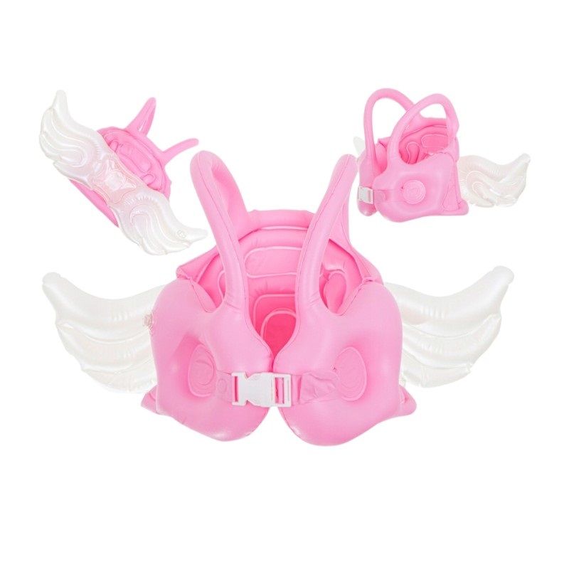 Παιδικό φουσκωτό σωσίβιο γιλέκο με φτερά. Με κούμπωμα ασφαλείας. Κατασκευασμένο από μαλακό, ανθεκτικό PVC, μη τοξικό, απόλυτα φιλικό στο δέρμα. Άνετη και σταθερή εφαρμογή. Μέγεθος 40cm.