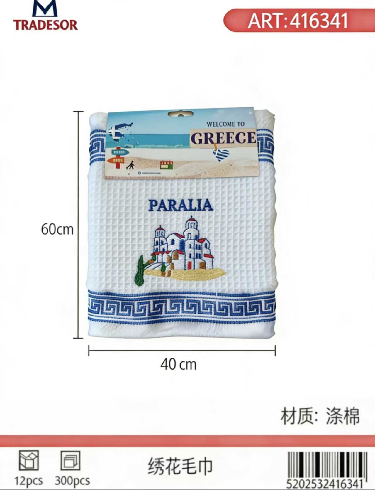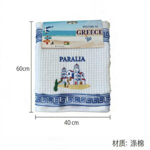Σετ πετσέτα-ποτηρόπανο Souvenir, 12 τεμάχια, με υπέροχα κεντημένα θεματικά σχέδια που αντιπροσωπεύουν την Ελλάδα, εξαιρετικά μαλακή και απορροφητική, ιδανική ως αναμνηστικό ταξιδιού ή δώρο.