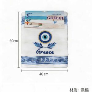 Σετ πετσέτα-ποτηρόπανο Souvenir, 12 τεμάχια, με υπέροχα κεντημένα θεματικά σχέδια που αντιπροσωπεύουν την Ελλάδα, εξαιρετικά μαλακή και απορροφητική, ιδανική ως αναμνηστικό ταξιδιού ή δώρο.