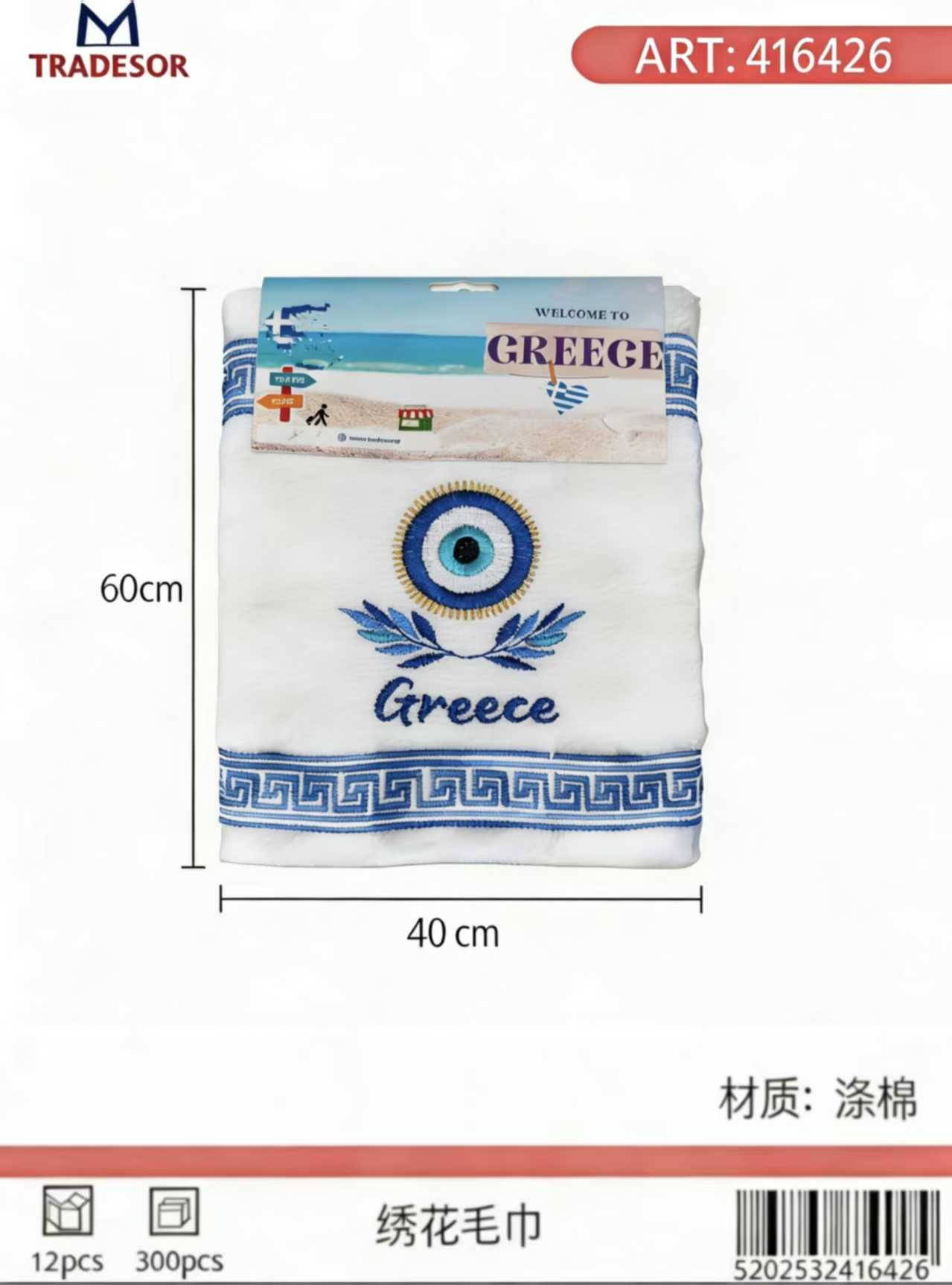 Πετσέτα Souvenir με κέντημα – Σετ 12pcs – Greece – 416426
