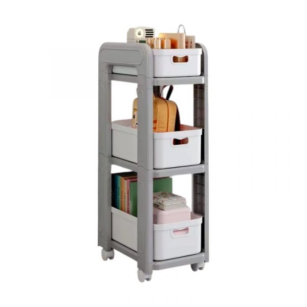 Βοηθητική πλαστική ραφιέρα 3 επιπέδων, με αφαιρούμενα κουτιά αποθήκευσης και ρόδες για εύκολη μετακίνηση,