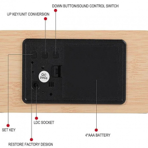 Ψηφιακό ρολόι–Ξυπνητήρι LED, σε ιδιαίτερο σχεδιασμό με εφέ ξύλου. Πρακτικό μέγεθος που μπορεί να τοποθετηθεί παντού και να προσδώσει σύγχρονη νότα στο χώρο σας.