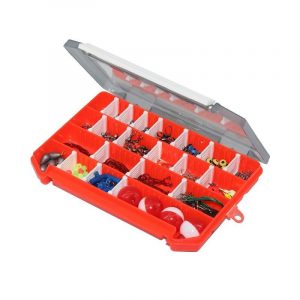 Πλήρες σετ αξεσουάρ ψαρέματος σε εργονομική πλαστική θήκη με διαχωριστικά.
