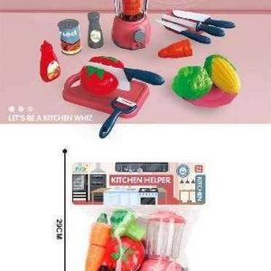 Παιδικό σετ κουζίνας με μπέντερ, αξεσουάρ, σκεύη και τρόφιμα, σε υπέροχο πολύχρωμο σχεδιασμό.