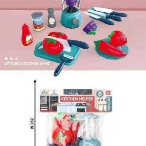 Παιδικό σετ κουζίνας με μπλέντερ, αξεσουάρ, σκεύη και τρόφιμα, σε υπέροχο πολύχρωμο σχεδιασμό.