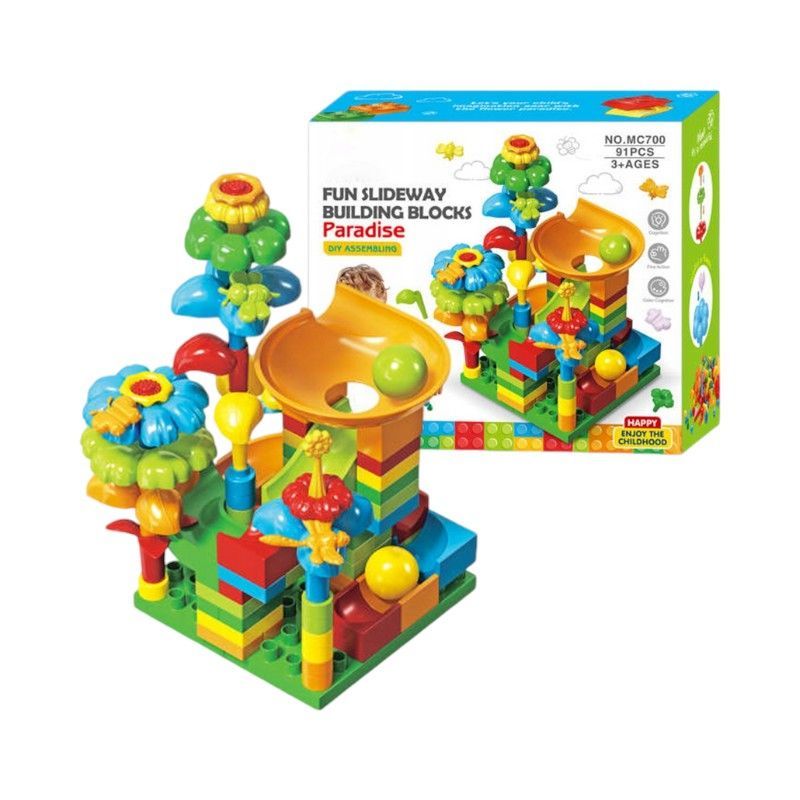 Συναρμολογούμενη πίστα DIY με τουβλάκα και τσουλήθρα με μπαλάκια που κάνουν τρελά κόλπα, για ένα ατελείωτο δημιουργικό παιχνίδι!