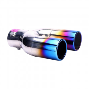 Τελικό εξάτμισης αυτοκινήτου, διπλό, αλουμινίου, με μπλε τελείωμα και εφέ φλόγας.