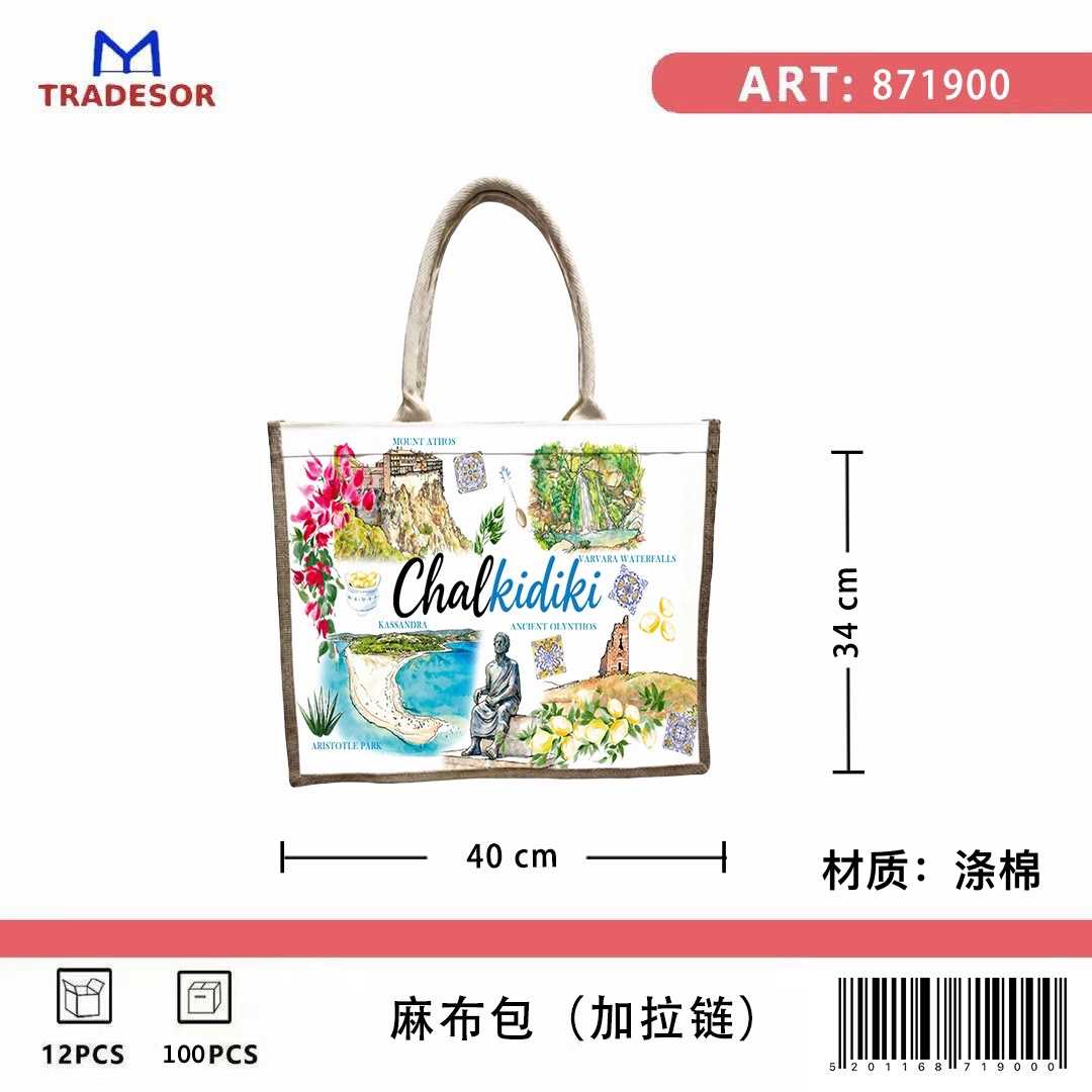 Τουριστική τσάντα λινή με φερμουάρ – Chalkidiki – 40*34*19cm – 871900