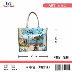 Τουριστική τσάντα λινή με φερμουάρ – Chalkidiki – 40*34*19cm – 871903