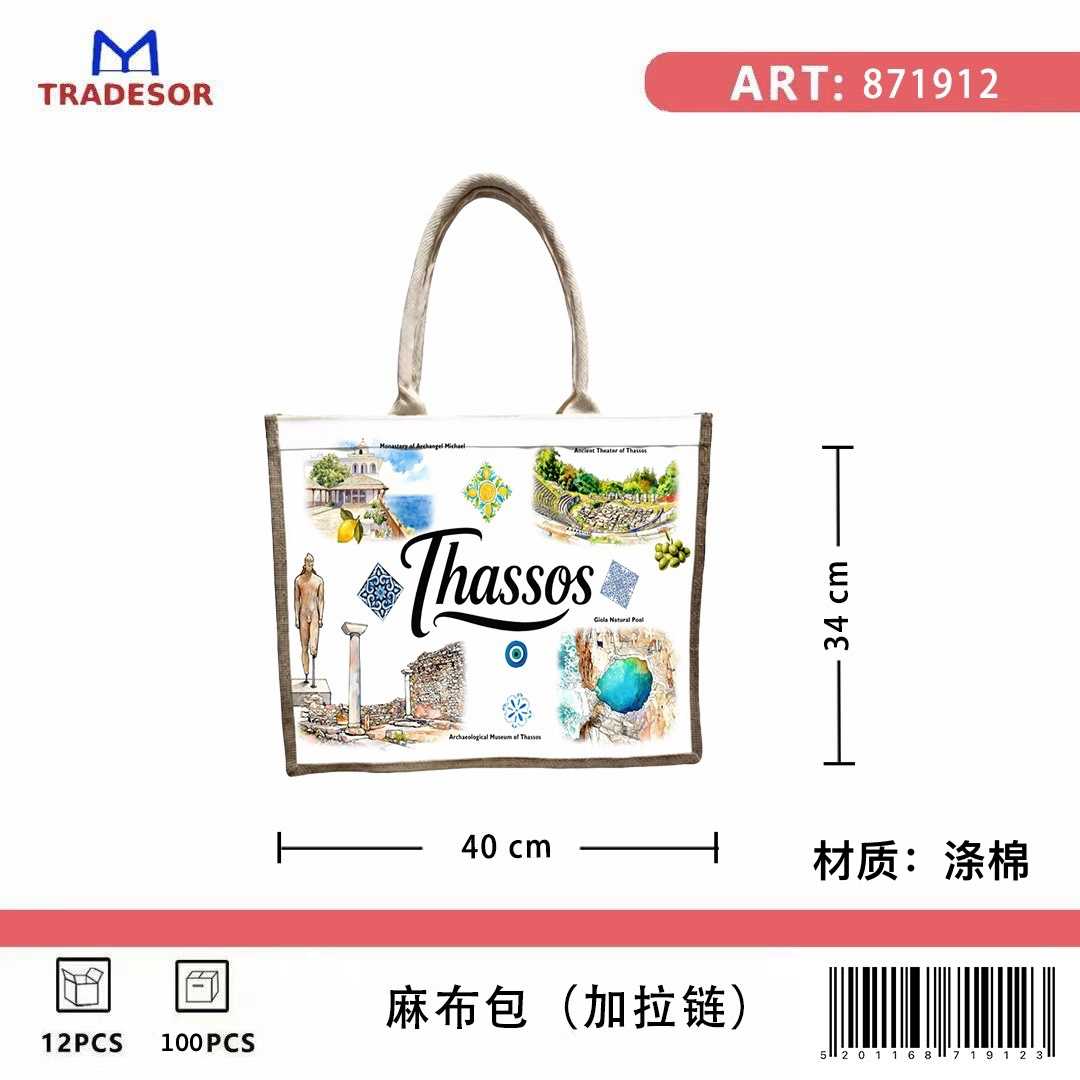 Τουριστική τσάντα λινή με φερμουάρ – Thassos – 40*34*19cm – 871912