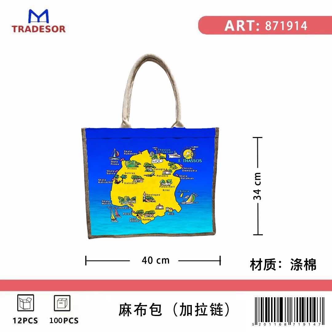 Τουριστική τσάντα λινή με φερμουάρ – Thassos – 40*34*19cm – 871914