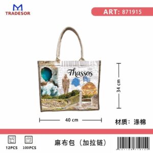 Τουριστική τσάντα λινή με φερμουάρ – Thassos – 40*34*19cm – 871915