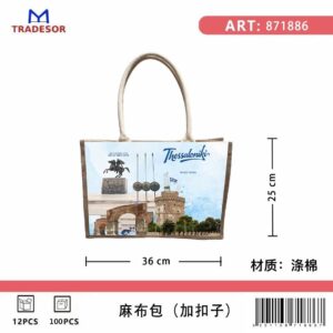 Τουριστική τσάντα λινή με κουμπί – Thessaloniki – 36*25*16cm – 871886