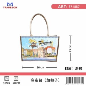Τουριστική τσάντα λινή με κουμπί – Thessaloniki – 36*25*16cm – 871887