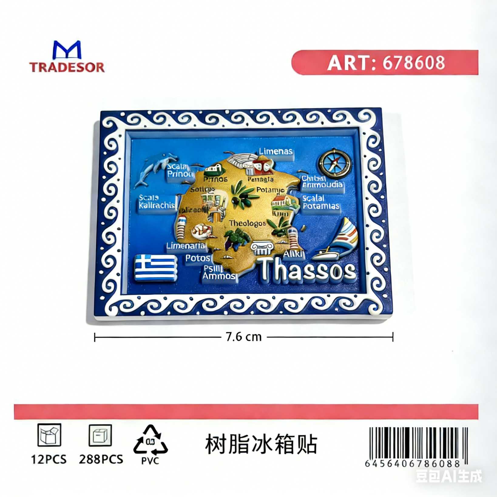 Χειροποίητο πολυεστερικό, τουριστικό μαγνητάκι souvenir, από υψηλής ποιότητας ανεξίτηλα, μη τοξικά υλικά και χρώματα, με υπέροχα, ρεαλιστικά ανάγλυφα σχέδια. Πακέτο 12 τεμαχίων.