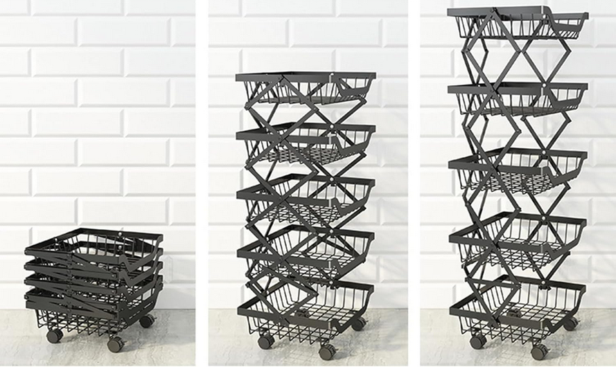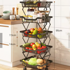 Μεταλλική ραφιέρα πενταώροφη, με ρόδες για εύκολη μετακίνηση. Πτυσσόμενη για να μην καταλαμβάνει χώρο όταν δεν χρησιμοποιείται, με εργονομικό σχεδιασμό για εύκολη καθημερινή χρήση.