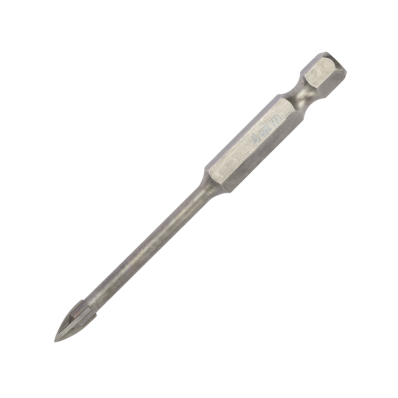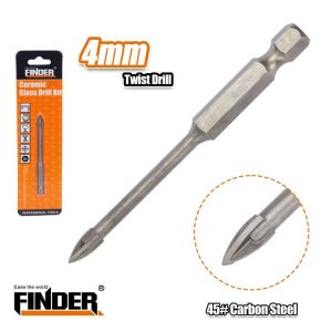 Τρυπάνι τετράκοπο γυαλιού και πλακιδίων της Finder, κατασκευασμένο από ατσάλι #45 Carbon Steel. Μέγεθος: 4mm.