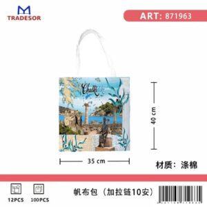 Υφασμάτινη τουριστική τσάντα καμβάς με φερμουάρ, ιδανική για καθημερινή χρήση, ταξίδια και εξορμήσεις. Κατασκευασμένη από ανθεκτικό καμβά, προσφέρει υψηλή αντοχή και σταθερότητα, ενώ το πρακτικό κλείσιμο με φερμουάρ διασφαλίζει την ασφαλή αποθήκευση των προσωπικών αντικειμένων. Διαθέτει ευρύχωρο εσωτερικό, κατάλληλο για μεταφορά ρούχων, αξεσουάρ, αγορών ή ειδών παραλίας. Με στιβαρή κατασκευή και διαχρονικό σχεδιασμό, αποτελεί μια πρακτική και κομψή επιλογή που συνδυάζει αντοχή, λειτουργικότητα και άνεση στην καθημερινότητα.