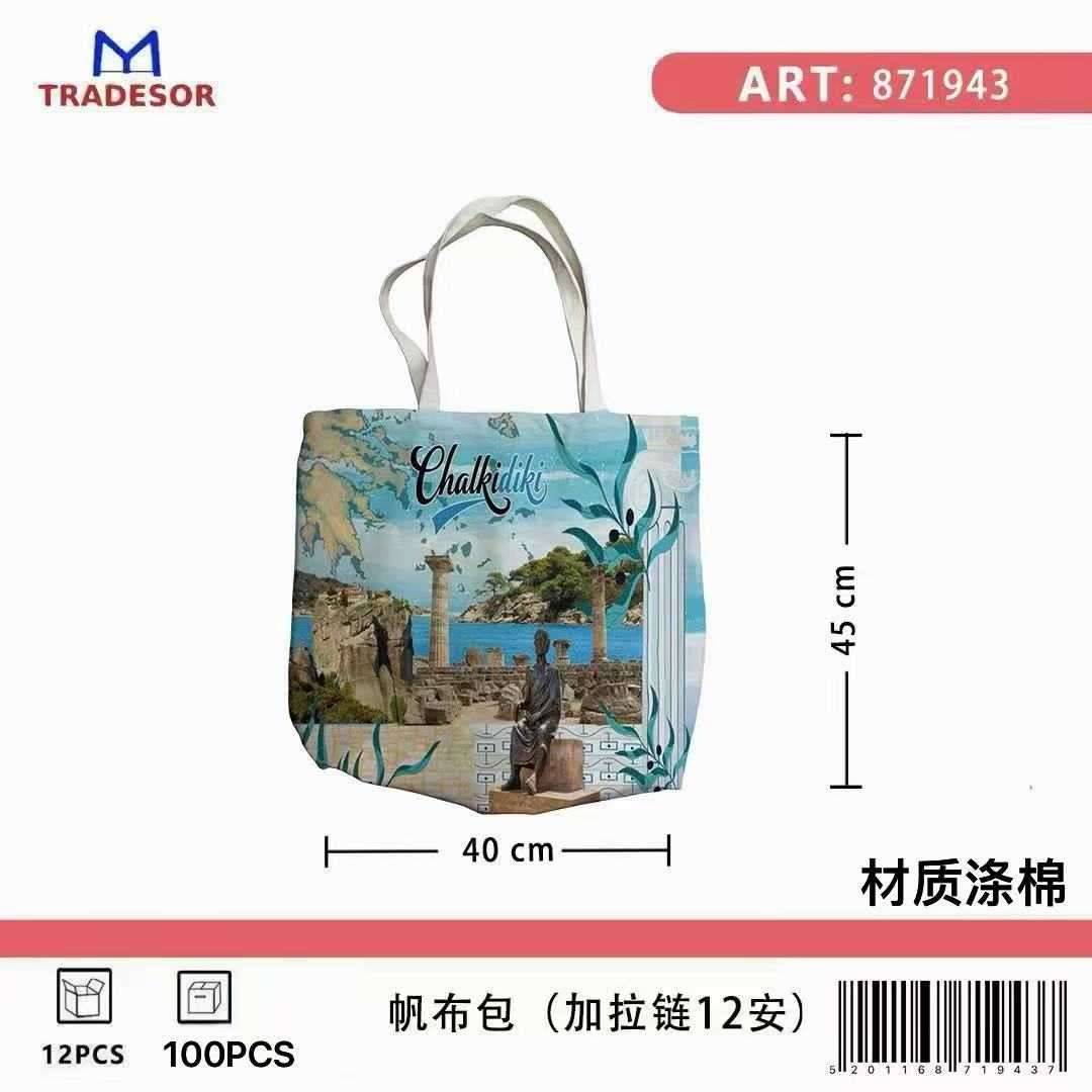 Υφασμάτινη τουριστική τσάντα καμβάς με φερμουάρ – Chalkidiki – 45*40*10cm – 871943