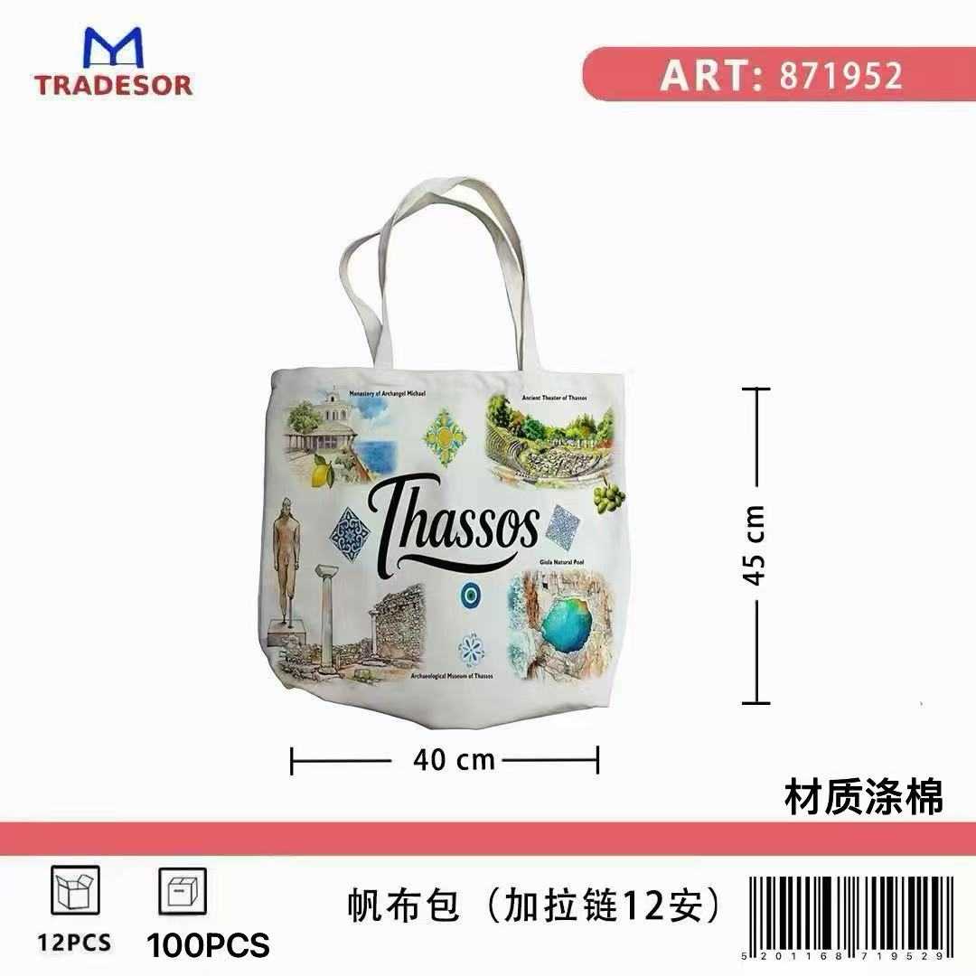 Υφασμάτινη τουριστική τσάντα καμβάς με φερμουάρ – Thassos – 45*40*10cm – 871952