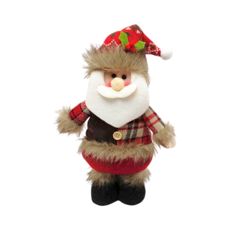 Χριστουγεννιάτικη, λούτρινη, διακοσμητική φιγούρα όρθια, σε υπέροχο σχεδιασμό και εντυπωσιακές, ρεαλιστικές λεπτομέρειες. Μπορεί να ταιριάξει παντού και να προσδώσει ένα χαριτωμένο γιορτινό τόνο σε κάθε χώρο.