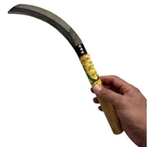 Δρεπάνι οδοντωτό, ιδανικό για κηπουρικές και γεωργικές εργασίες, με ξύλινη εργονομική λαβή.